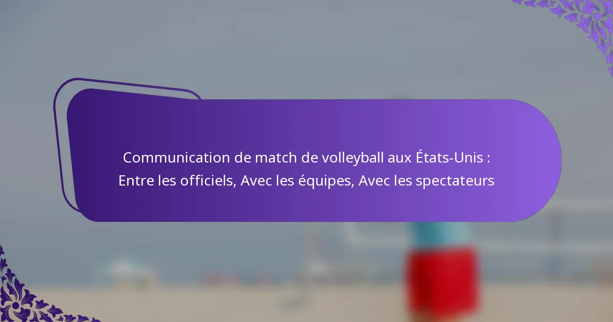 Une communication efficace est cruciale lors des matchs de volleyball aux États-Unis, garantissant des interactions fluides entre les officiels, les équipes et les spectateurs. Les officiels utilisent un mélange de signaux verbaux et non verbaux, ainsi que de la technologie, pour maintenir l’ordre et la clarté sur le terrain. De plus, une communication engageante avec… Read More »